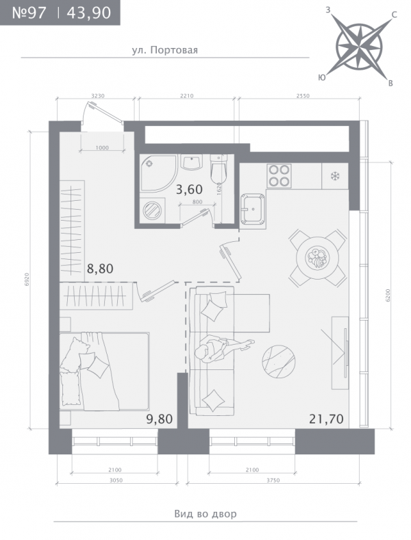Фотографии и рендеры представлены для информирования об архитектурных, технических и планировочных решениях. Планировочные решения квартир и комнат, схемы расстановки перегородок (зонирование) и расстановки мебели на кухне и в санузлах носят рекомендательный характер и представлены в качестве примера. Юридически значимая информация изложена в договорах долевого участия, заключаемых в соответствии с 214-ФЗ.