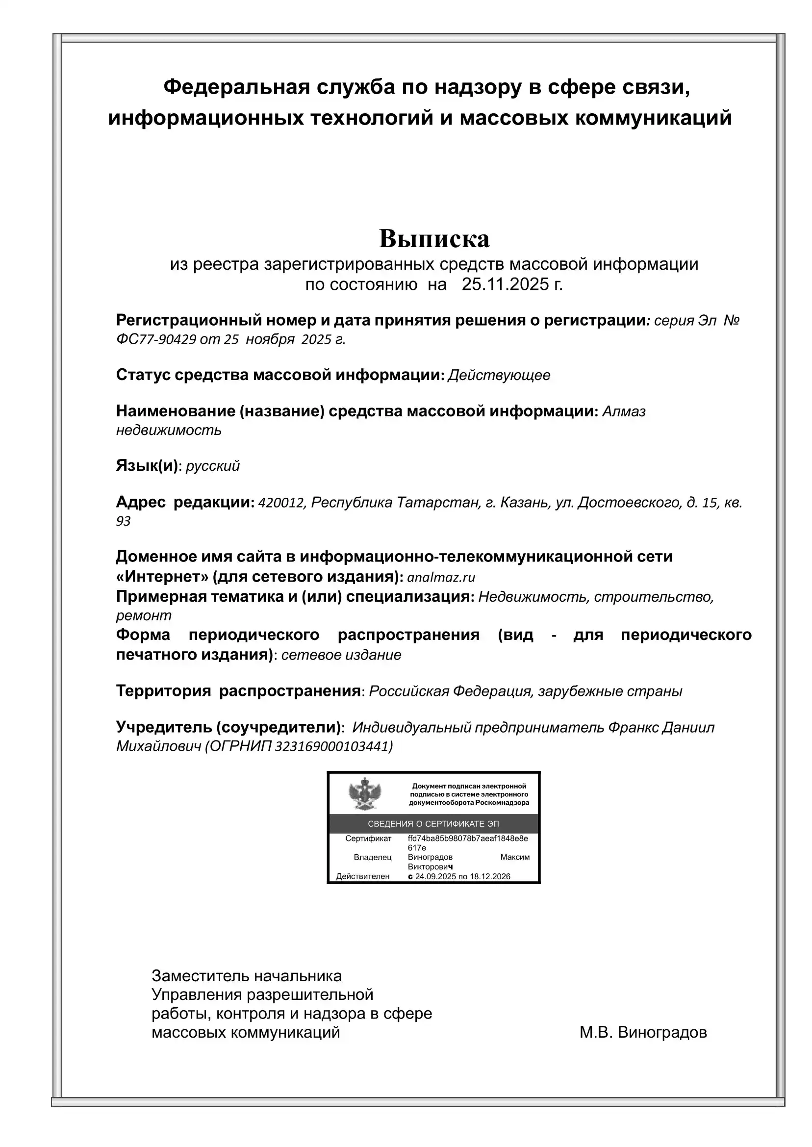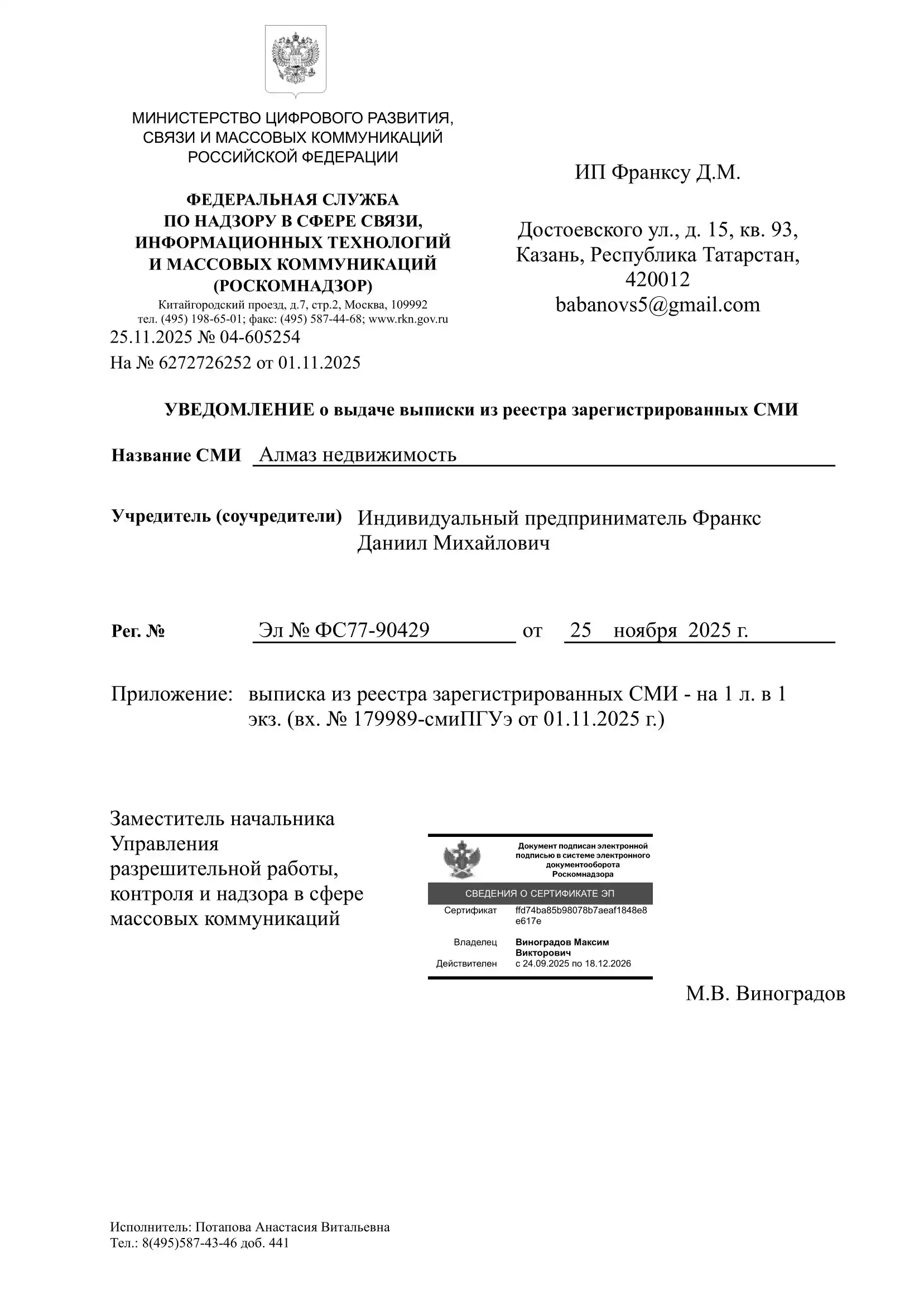 Срок рассмотрения: от 1 до 2 дней